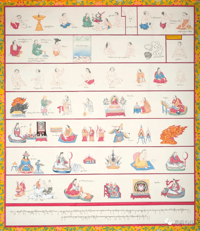 《四部医典》曼唐第二十二图:起居 admin 2024-12-14第二十二图 起居本图系根据《四部医典·论述本集》第十三章“疾病的治疗”中的“日常起居 ” 、第十四章“季节起居”、第十五章“临时起居”等内容综合编绘。
