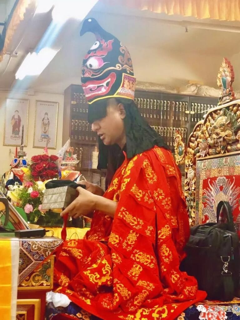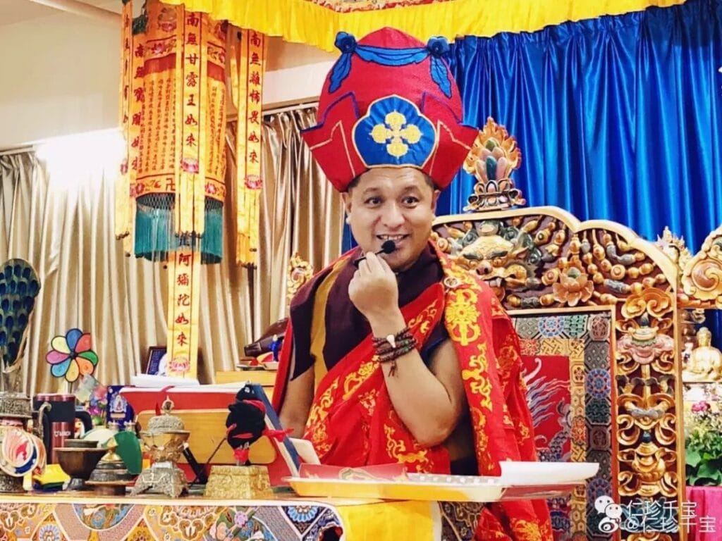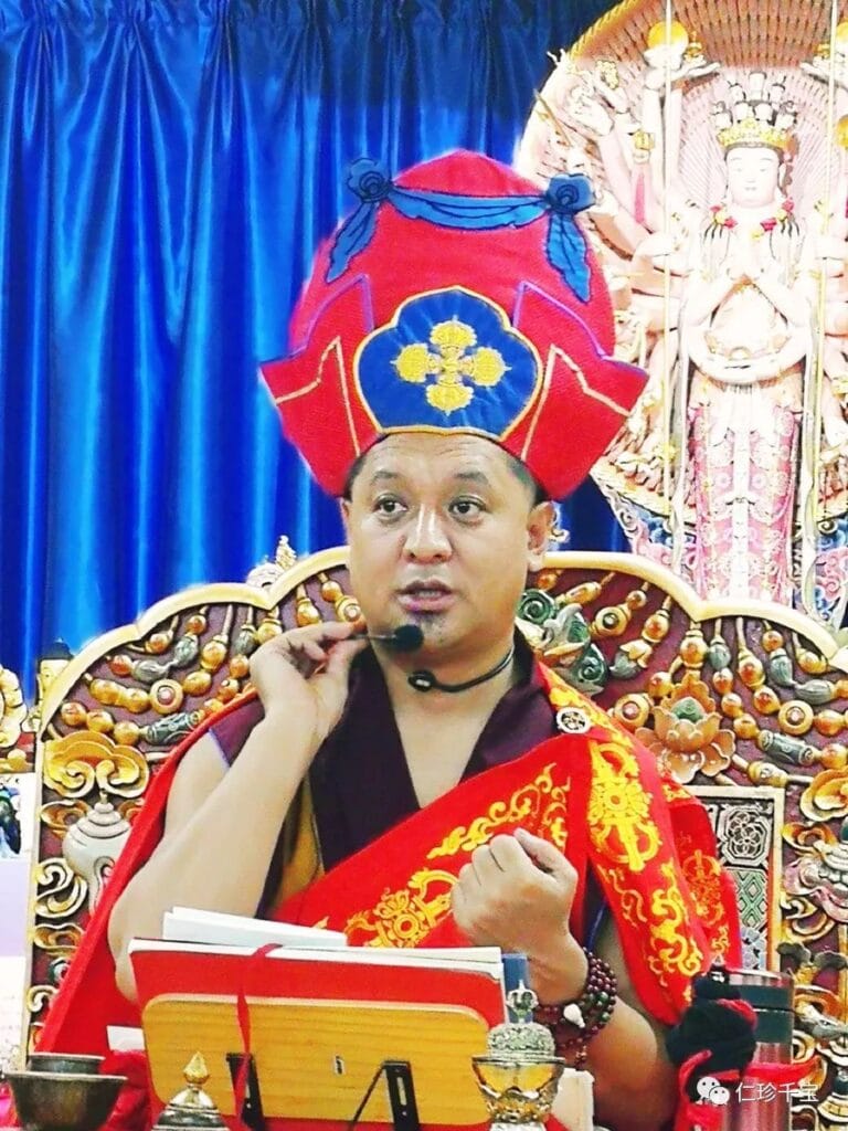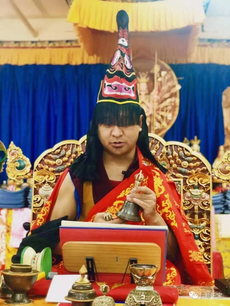 这次我能传自生自现八大黑噜嘎很高兴,我在很多上师座下接受过这个法门,我完整的接受是在丘商仁波切座下,他交待我要弘扬这个法门。我灌顶所戴的莲师帽也是他亲自给我缝的,我传法时,感觉他就在我的头上。我的实修传承不止这一个,实修的传承是指上师主要实修这个法门,而且还闭过关,相续没有间断。丘商仁波切就有这样的传承,他的家族是尼泊尔巴期达日的后代,是文殊阎魔敌的传人,文殊阎魔敌的法门都是他们家族里面传出来的,他的寺庙是多杰扎寺。多杰扎寺有十三大活佛,最大的活佛是现任的多杰扎教派的法王仁增千莫,第二位就是法主丘商仁波切,他们两位互相认证,互为师徒。多杰扎的大圆满自生自现八大黑噜嘎的传承就是这样传承下来的,自生自现八大黑噜嘎也是多杰扎主要弘扬的法门。