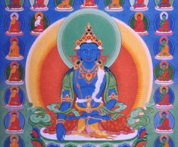 It represents the “Great Mirror Wisdom” among the five wisdoms and the awareness of Shakyamuni Buddha’s Great Mirror Wisdom, and often uses the Great Mirror Wisdom to destroy all afflictions and demons, so that the original unsullied and pure bodhicitta can be manifested.