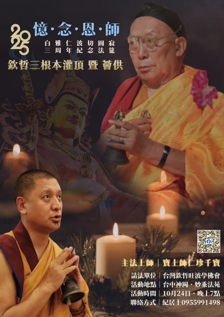 忆念恩师白雅仁波切圆寂三周年法筵~钦哲三根本灌顶、荟供