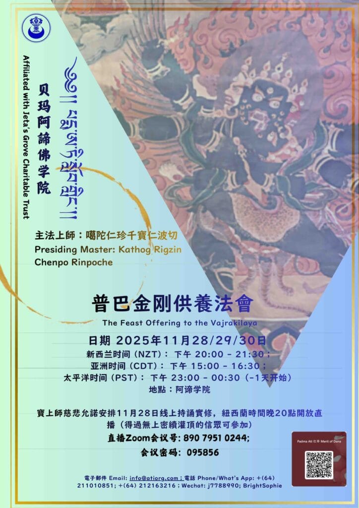 宝上师慈悲允诺安排11月28日线上持诵实修,纽西兰时间晚20点开放直播。