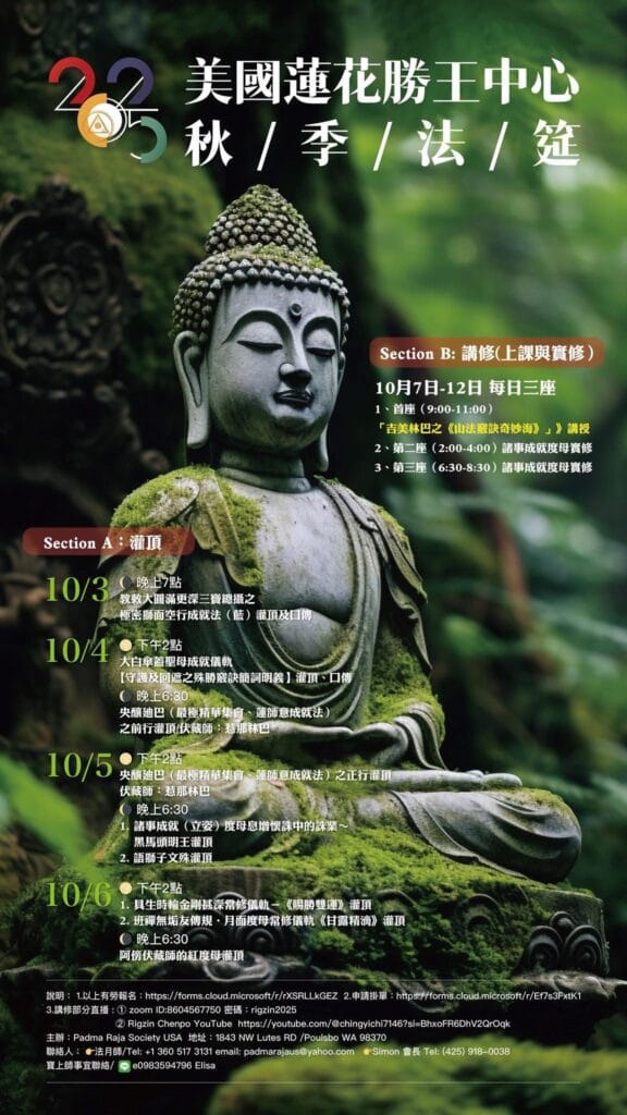 1、首座(9:00-11:00)吉美林巴大师之《山法窍诀奇妙海》讲授