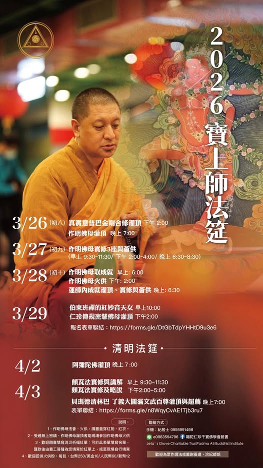 下午2點起:仁珍傳規密慧佛母灌頂 對密慧佛母有興趣的人可註冊此課程 :https://padmaraja.org/zh-hant/courses/%e5%af%86%e6%85%a7%e4%bd%9b%e6%af%8d/